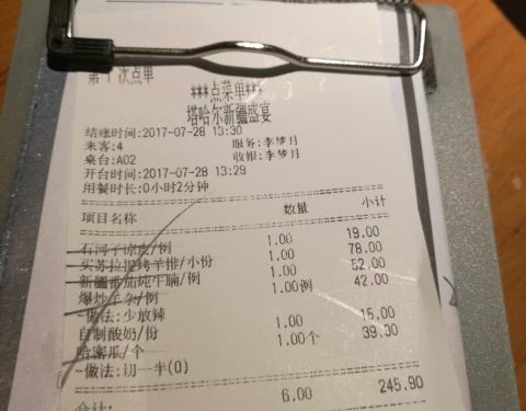 跟5星还是有差距滴~~同样是新疆餐厅 为啥耶里夏丽开了这么多年还需要排队 你们需要研究一下了 菜的分量之小 让我们怀疑进了上海餐厅……适合2个人 羊蝎子正好就4块……1块巨大 2块正常 1块巨小 牛腩番茄也是 感觉6-8块牛腩吧 有点塞牙 但是番茄和番茄酱这股酸甜味 我还是觉得不错的 羊肉串 有点柴 还不如跟耶里夏丽一样亲民点好 凉皮量也不多 当中的豆腐块不好吃 实心的…… 花蛤反倒是炒的还可以 很有上海特色! 新疆啤酒还是不错的,不是黑啤 不知道为啥他们不要黑啤 就要新疆啤酒