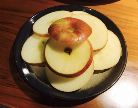 某天下班后来吃晚饭,三个人团了个双人餐,再单点了些菜品,人均130左右吧,性价比还行,毕竟有个胃口超级大的盆友在,能把他喂饱,也是不容易的; 大盘鸡还是很入味的,羊肉串也烤的香嫩,奶茶的口感有点淡了,烤鱼是整条没有切开,吃起来有点不方便,放久了,口感就有些老了; 凉皮有点小失望,黏糊糊的,完全没有爽滑可口 它家的菜盘都很大,四人位的桌子都放不下了,真心不是我们点的多啊…… 门口有卖苹果,两个装的,19.9,带了盒回家,果然水分足,甜度也正好!