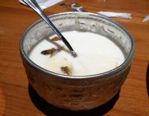 第一次吃塔哈尔,感觉味道真的不错。特别是帕芙丽,第一次吃,上面有坚果什么的。甜而不腻。大盘鸡土豆很入味,鸡肉有点少,有点太辣,吃完真的是热乎乎。