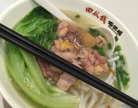 在上火车前到拱北口岸地下商场兜了一圈打包晚餐,商场很大,要找到这家不容易,点了二人套餐50元包含鲜虾肠粉+艇仔粥+濑粉 +一份饮料,2人足够吃了,打包加了3元。艇仔粥最好吃,肠粉到火车上有点硬了口感不好,濑粉不错量很足。