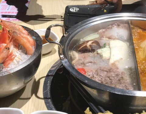 火锅店里可以洗桑拿了。但是虹悦城的环境还是太糟糕了,通风太差,电扇也没开