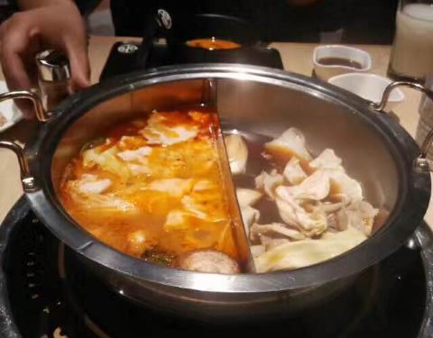 鸳鸯锅味噌有点辣不错,调料很多,推荐榴莲酥。