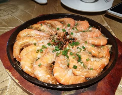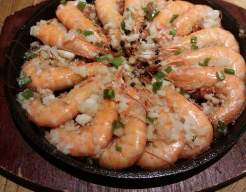 地址:苏州新梅华分店很多。 6.手撕鸡:42,很好吃。 3.铁板蒜蓉虾38元:每次必点吧,稳中求赞