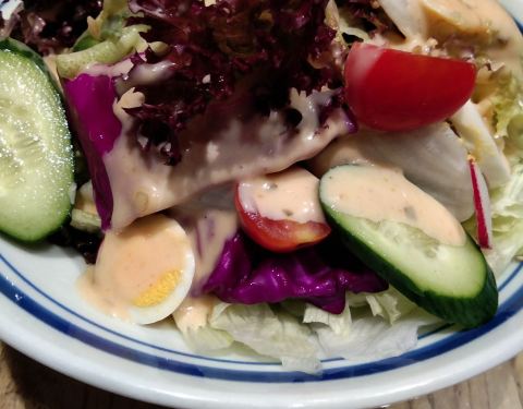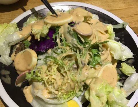 烤鸭好吃,时间久,必吃的。沙拉酱很独特,有芥末味道!可以试试。
