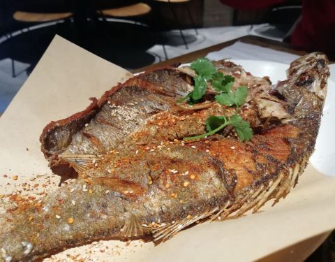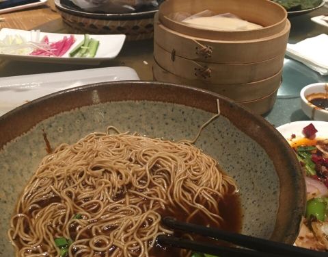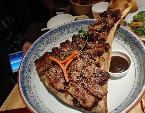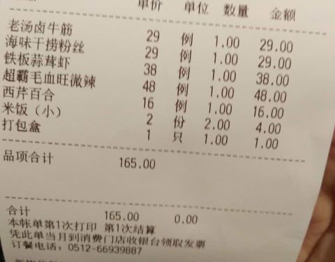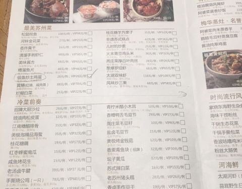 地址:苏州新梅华分店很多。每家店不同季节,菜单有少许不同。 人均:100元。 苏州新梅华人气很高,服务态度就一般了,因为太忙呀。 朋友请客,只有四人,点了很多菜,人均其实没有这么多,中午时间有限,没点烤鸭,鱼头汤量也过大。 1.牛扇骨98元:四个人吃有点量大了,每次点这个,都会说起:这骨头是不是重复利用?! 2.猪蹄:价格不详,这道菜上晚了,已经吃饱了。 3.铁板蒜蓉虾38元:每次必点吧,稳中求赞。 4.干煎鲈鱼48元:我和小伙伴都非常喜欢,一人可以吃一条,火候适中,每次不管是堂食还是外卖必点。 5.扇贝:5元只,每人一只。 6.手撕鸡:42,很好吃。 7.荠菜羹:15,也是每次必点的。 8.小米糕:16,还用说吗,打call。 另外还叫了葱油拌面25元。 嗯,减肥再说吧