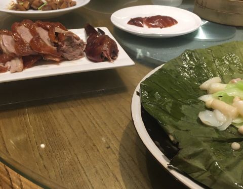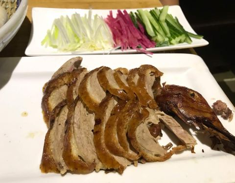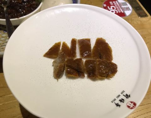 一直很火爆的一家店,经常需要等位,这家的烤鸭还不错,138一套,片皮吃,鸭架可以椒盐也可以泡饭,不过建议椒盐,泡饭就没几块鸭子。