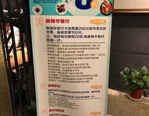 景城邻里中心位于苏州工业园区湖东区。这是相对较大型的邻里中心,饮食店餐厅选择性很多。这家新梅华连锁餐厅就在其中,店面不小,生意不错。