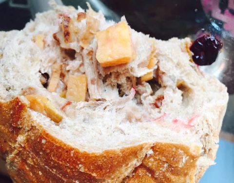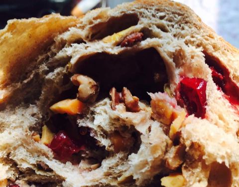 这个面包很不错哦,很喜欢吃,还有一款巧克力豆果仁的也很好吃!