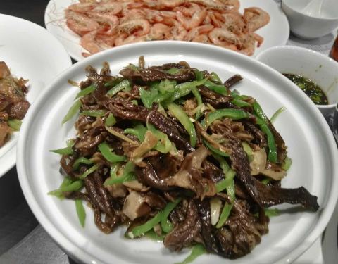 溢香堂烹牛肉,沙姜九层塔值得推荐,米饭也很香,正宗东北五常米。就是停车位太紧张。
