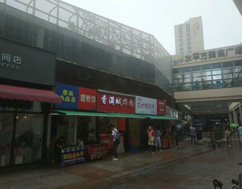 这不是水平方,而是在九霄梦天地和学则路地铁站后面,亚东商业广场的一个美食广场,主要是些中低档小吃,如大脸鸡排等。一般是学生来吃