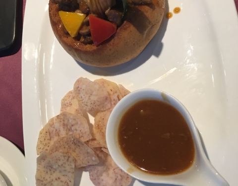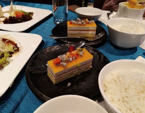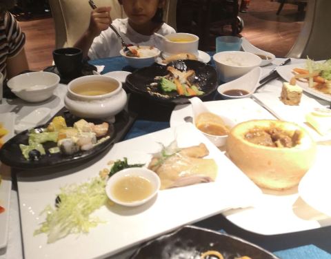 - 霸王鸡伴罗勒炒菠菜还不错。一点钟来还要排队。儿童套餐就冲着甜品上有个卡卡虎巧克力选的