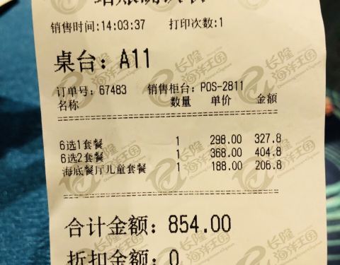 到海洋王国玩,中午我选了这家海底餐厅。一点钟来还要排队。我们选了两个套餐和一个儿童套餐。儿童套餐就冲着甜品上有个卡卡虎巧克力选的。一定要选靠玻璃的旁边坐下。这样可以和鲸鲨合影哦。南瓜汤太淡了。澳洲...到海洋王国玩,中午我选了这家海底餐厅。一点钟来还要排队。我们选了两个套餐和一个儿童套餐。儿童套餐就冲着甜品上有个卡卡虎巧克力选的。一定要选靠玻璃的旁边坐下。这样可以和鲸鲨合影哦。南瓜汤太淡了。澳洲牛柳煎的太老了。霸王鸡伴罗勒炒菠菜还不错。这家餐厅适合带孩子来。