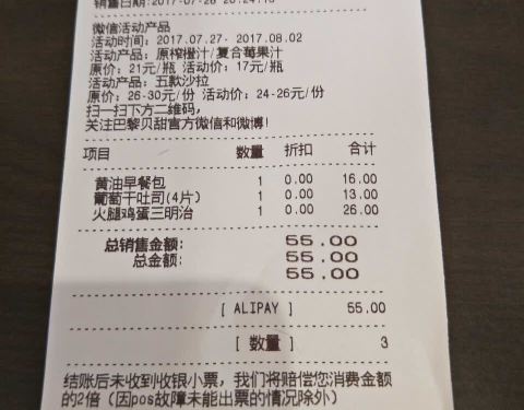 就是巴黎贝甜没有活动的,面包新语一个脏脏包15元,两个就25元,巴黎贝甜你买3只都没有优惠的
