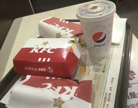 本来是在大观店手机下单,结果阴错阳差显示是美辰店取货,还好两个店距离不算太远!新品避风塘大虾鸡腿双层堡,鸡肉外表酥脆,肉薄了点,还有几个虾仁,但是面包质量不太好。总体来说这款汉堡味道和预想的差不多,肯德基最经典的还是新奥尔良烤鸡腿堡。
