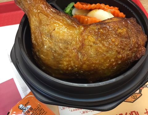 在写字楼的一楼,周边没有什么餐馆,所以这里吃饭的人还不少。特别是中午,因为周边写字楼的工作人员下班吃午饭,所以往往人员很多,找不到座位,需要拼桌。过了高峰时段,就好很多。因为是连锁经营,所以菜品都很齐全,卫生也不错,标准化的服务,吃着挺放心的。超级喜欢大鸡腿饭,价格不高,一整只烤鸡腿,看着就实在,很喜欢,如果在KFC的商城团购,更有优惠。