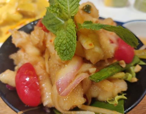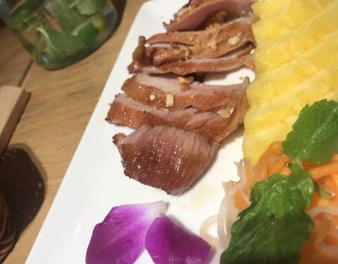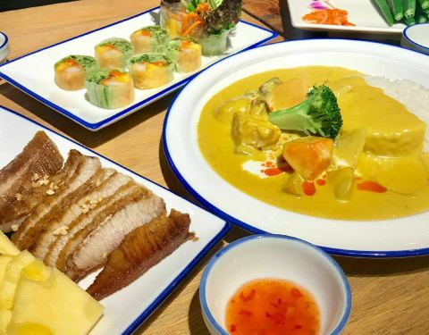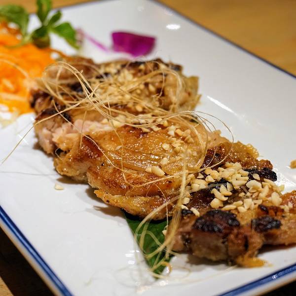 「香茅烤鸡肉捞檬粉」 隆重介绍我晴花式技术拌粉!粉很韧都不会断的。三个人分就差直接咬断了哈哈哈。鸡肉带着鸡皮的油脂混合越式香茅香气。酸甜爽翻。 「越式椰香咖喱牛腩配饭」 和传统的咖喱饭不太一样呢。椰奶...「香茅烤鸡肉捞檬粉」 隆重介绍我晴花式技术拌粉!粉很韧都不会断的。三个人分就差直接咬断了哈哈哈。鸡肉带着鸡皮的油脂混合越式香茅香气。酸甜爽翻。 「越式椰香咖喱牛腩配饭」 和传统的咖喱饭不太一样呢。椰奶重。厚嘟嘟。每次吃咖喱饭总在惊叹土豆。够粉! 「芒果鱼柳米纸卷」 越南的米纸卷真是很有特色的食物。透明的饼皮弹性不硬。最原汁原味的蔬菜和炸制的鱼柳。油腻感全扫光。芒果好甜噢。 「菠萝猪颈肉」 相比之下可能猪颈肉的肉质稍微让我不满意一点。切得比较厚欠弹一点点干。是要和菠萝一起入口嘛。 「椰奶凉糕」 入口即化。筷子都夹不起来。很软很软很软的椰奶糕。一碰会弹进你肌肤的那种。 「香茅鸡扒」 那天是走了什么运经理又给打折又送鸡排。和上面捞粉的一样的啦。够嫩。肉吃爽。 「白灼秋葵」 女人的聚会少不了的蔬菜。
