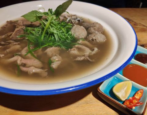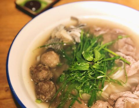国庆期间带着外地的朋友来沙坡尾逛街,晚上每一家店大排长队,只有这家看着还有一点盼头。没想到店面真的有点小,不是很起眼,座位估计也就十来个。 上菜速度还可以。三个人点了三份主食与一些小菜,结局当然是:吃不完…主食份量超大,有点其他小食的话,建议主食不用点那么多…越南火车头汤河粉是招牌,汤头很正,有一股清香,配料丰富,牛肉丸会爆浆,超级筋道!芒果鱼柳米纸卷口感很清新,米皮Q弹耐人寻味。鸡扒跟我想象中的不太一样,不过味道也是比较香甜。估计是生意比较好,没有椰子糕了,有点小遗憾。人均七十左右,(说实话我赶脚其实50块就可以吃的很饱了)性价比可以说非常高了。