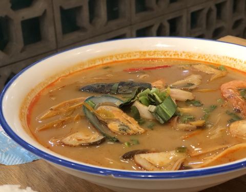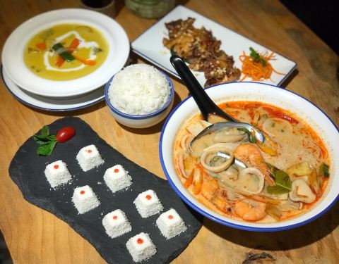 来世茂看完电影下来觅食,发现这家越南料理,好像新开的哈,店虽小,但布置得挺有异域风情~见我们俩人,可爱的小妹推荐了双人团购餐,本来觉得不够可能要加点,实际上还有余~ 咖喱牛腩配米饭,不能拒绝的咖喱!!(๑´ڡ`๑)好吃,一碗米饭拌咖喱吃个精光哦~超爱里头的土豆! 冬阴功汤萌粉,份量超大的,里面是细粉,好多料的,新鲜的虾和青口,还有蘑菇鱿鱼。朋友把面条夹出来盛在小碗里一碗下肚已经饱足,实际上里面还有两三小碗的量~蹭了几口汤,很好喝呢~不过朋友觉得汤头比较甜,这么大碗会容易腻哦。 香茅鸡扒好吃~ 凉糕,椰丝奈斯!口感入口即化~不会腻~ 完美~
