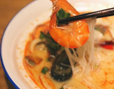 阮氏娘越南料理位于世茂商城3楼,清新的蓝色门面。 咖喱牛腩饭,咖喱奶香很重,拌上米饭很好吃,牛肉稍显有点老硬,如果能再嫩一点就好啦。 冬阴功捞檬粉,超大一份,很适合两个人吃,汤头加入了奶,奶甜奶甜的,...