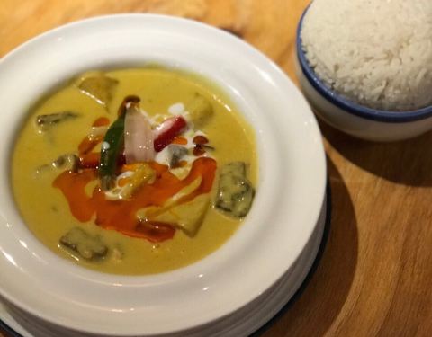 来世茂看完电影下来觅食,发现这家越南料理,好像新开的哈,店虽小,但布置得挺有异域风情~见我们俩人,可爱的小妹推荐了双人团购餐,本来觉得不够可能要加点,实际上还有余~ 咖喱牛腩配米饭,不能拒绝的咖喱...