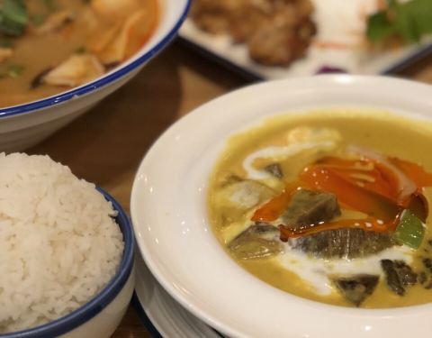 第一次来吃阮氏娘,店里有套餐。一粉一饭,冬阴功的汤粉,很是有冬阴功的味道。还有虾鱿鱼青口,满满一大份,让人吃到肚撑。 咖喱牛腩,咖喱味道十足,米饭也是好吃的。牛腩肉很多哦~ 香茅鸡扒,鸡肉很嫩~爱吃肉...