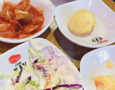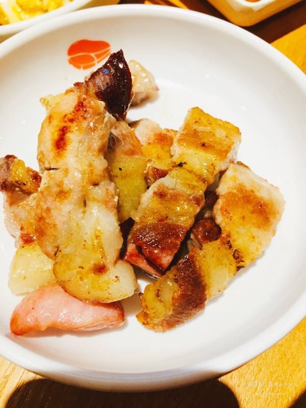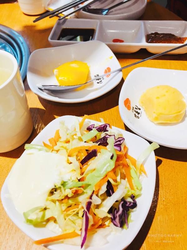 【地址】就在中华城三楼,建议可以从85度c旁边的电梯上去。 【环境】店内以2-4人桌为主,4人主要以小圆桌的形式,一上桌就有好多小菜,泡菜和土豆是我的最爱,要了好几份。 【烤肉】猪五花,看着很肥,但是烤起来超香,肥而不腻,沾着酱料,包着生菜和泡菜,超好吃。调味猪排,有腌制过了,超入味,而且烤起来肉超嫩。护心肉,也是他家的招牌,属于偏瘦一型,不喜欢吃肥的可以试试这款肉,超好吃。 【辛拉面】超爱韩国泡面,辛拉面又Q又好吃,真的很赞! 【鸡蛋羹】鸡蛋很嫩,味道不错,里面放了葱和蟹籽。
