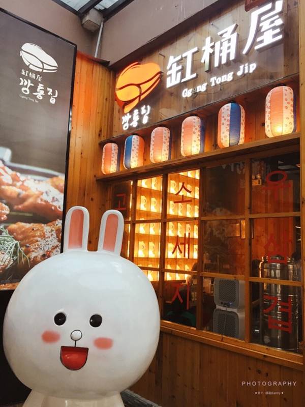 吃烤肉最爽的事莫过于有人帮你烤!缸桶屋就是全程服务员小哥在边上帮你烤肉,为了这点,本懒人就可以为他疯狂打call!更何况他还这么好吃! 中午12点就需要稍微排一下下队,等候了没多久就有位置啦~翻台率挺高...吃烤肉最爽的事莫过于有人帮你烤!缸桶屋就是全程服务员小哥在边上帮你烤肉,为了这点,本懒人就可以为他疯狂打call!更何况他还这么好吃! 中午12点就需要稍微排一下下队,等候了没多久就有位置啦~翻台率挺高的~ 「五花肉」超好吃的大块五花肉,肥而不腻!一点都不油腻,感觉油都被烤干了,包上生菜和大蒜真的很好吃啊~ 「石锅拌饭」服务员小哥很贴心的帮我拌好,倒入拌饭酱,均匀拌开~味道很不错,丰富的配菜口感超级丰富 「台湾香肠」带点酒精味的台湾香肠,烤起来超好吃!很喜欢诶