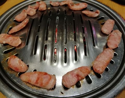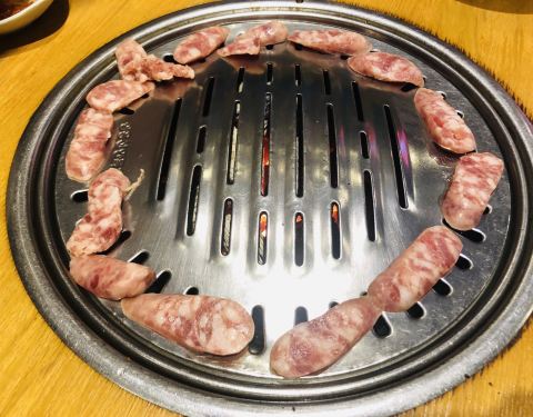 店面其实挺大的,但饭点人超级多,不愧是网红的韩国烤肉店。台湾香肠也不错,肉超饱满