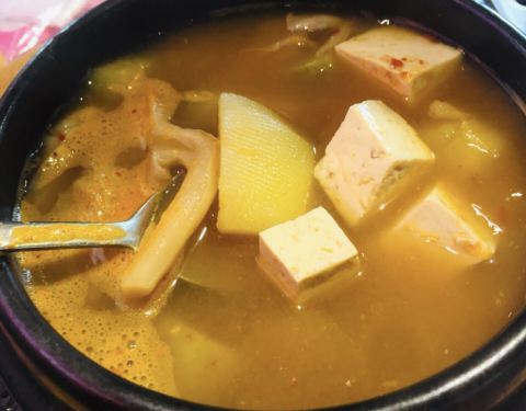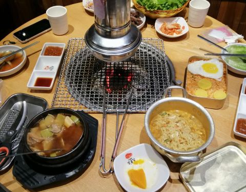 中华城里很正宗的一家韩国烤肉店。装修简简单单,装饰很多韩国烤肉元素壁画。一桌人围着小烤炉边上现烤现吃,烤肉用的现烧出来的炭火,火很旺。店员小哥在前面给烤了夹给我们,五花肉肥瘦搭配非常香。梅花肉吃起来很Q,微甜,口感很棒。护心肉烤起来肉质比较厚,嚼劲十足。