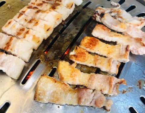 中华城里很正宗的一家韩国烤肉店。装修简简单单,装饰很多韩国烤肉元素壁画。一桌人围着小烤炉边上现烤现吃,烤肉用的现烧出来的炭火,火很旺。店员小哥在前面给烤了夹给我们,五花肉肥瘦搭配非常香。梅花肉吃起...中华城里很正宗的一家韩国烤肉店。装修简简单单,装饰很多韩国烤肉元素壁画。一桌人围着小烤炉边上现烤现吃,烤肉用的现烧出来的炭火,火很旺。店员小哥在前面给烤了夹给我们,五花肉肥瘦搭配非常香。梅花肉吃起来很Q,微甜,口感很棒。护心肉烤起来肉质比较厚,嚼劲十足。