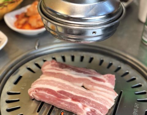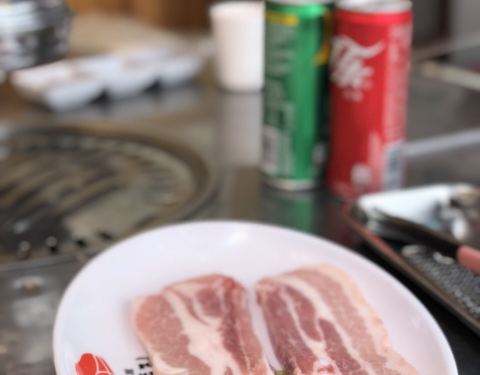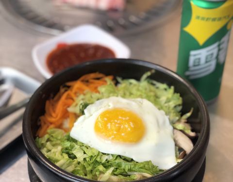 位于中华城北区三楼,店面装修是韩式风格,玻璃上面写着韩文,墙壁上面也是满满的韩文,还有最可爱的布朗熊宝宝,超萌的熊宝宝也到处可以看到。每个位置都有独立的吸油烟机,还有一个小凳子可以放包,湿纸巾,手套,还是很贴心的。 韩式烤肉 每桌都有专门的服务员帮忙烤肉,烤得很专业,看着摆盘都觉得超有食欲的。 最爱五花肉每次必点 厚实的五花肉整块下去烤,烤得有点点焦嫩,把油脂都逼出来,喜欢夹着一片泡菜,包着生菜一起吃,回味无穷。 护心肉 这款肉看起来有点点黑,但是吃起来超嫩的,非常有嚼劲。 掌中宝 这款吃起来口感脆脆的,小小块很入味。 主食 石锅拌饭 最爱吃饭里面的锅巴,味道香浓,拌均匀看起来很不错。