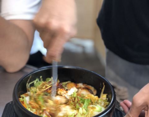 吃烤肉最爽的事莫过于有人帮你烤!缸桶屋就是全程服务员小哥在边上帮你烤肉,为了这点,本懒人就可以为他疯狂打call!更何况他还这么好吃! 中午12点就需要稍微排一下下队,等候了没多久就有位置啦~翻台率挺高的~ 「五花肉」超好吃的大块五花肉,肥而不腻!一点都不油腻,感觉油都被烤干了,包上生菜和大蒜真的很好吃啊~ 「石锅拌饭」服务员小哥很贴心的帮我拌好,倒入拌饭酱,均匀拌开~味道很不错,丰富的配菜口感超级丰富 「台湾香肠」带点酒精味的台湾香肠,烤起来超好吃!很喜欢诶