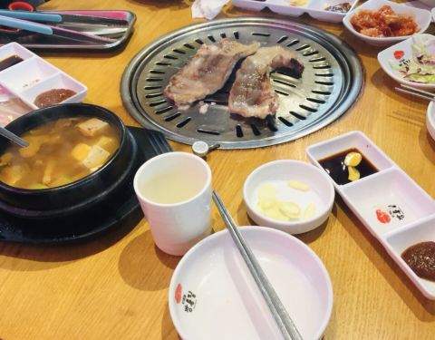 中华城里很正宗的一家韩国烤肉店。装修简简单单,装饰很多韩国烤肉元素壁画。一桌人围着小烤炉边上现烤现吃,烤肉用的现烧出来的炭火,火很旺。店员小哥在前面给烤了夹给我们,五花肉肥瘦搭配非常香。梅花肉吃起...