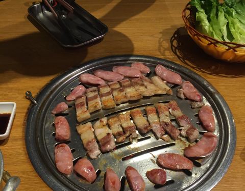 - 店面其实挺大的,但饭点人超级多,不愧是网红的韩国烤肉店。台湾香肠也不错,肉超饱满