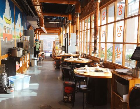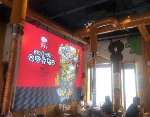 位于中华城北区三楼,店面装修是韩式风格,玻璃上面写着韩文,墙壁上面也是满满的韩文,还有最可爱的布朗熊宝宝,超萌的熊宝宝也到处可以看到。每个位置都有独立的吸油烟机,还有一个小凳子可以放包,湿纸巾,手...