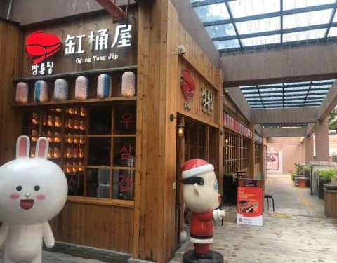 缸桶屋 环境 比较韩式的设计风格,有很多🐻熊的装饰物,挺可爱的。 店门口的圣诞叔叔也很可爱。 人多的时候需要排队,生意挺火爆的,大概排了半个多小时。 韩式烤肉 每桌都有烟囱,味道比较不会重。 五花肉 烤肉必点,肥瘦相间,吃起来口感比较香,喜欢包着香菜一起吃。 护心肉 已经腌过的肉,吃起来比较有味道,肉质鲜嫩。 烤鱼干 看起来有点像鱿鱼,一整片的,吃起来比较咸。 台湾香肠 香肠挺厚实的,吃起来有点甜。 掌中宝 吃起来口感脆脆的。 服务态度挺好的,有专门的人为你烤肉。 【餐厅名称】缸桶屋 【餐厅地址】中山路思明南路189号中华城CHINACITY北区3层 【所属菜系】韩国料理 【人均价格】100+ 【特色美食】烤五花肉