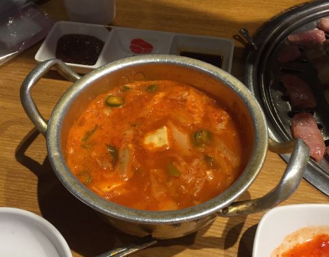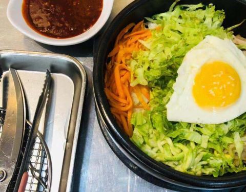 地址就在中华城北区3楼。店面其实挺大的,但饭点人超级多,不愧是网红的韩国烤肉店。小菜超级丰富,吃完可以无限量加,最爱土豆泥,超好吃,一口气吃了2个。肉类点了推荐的护心肉,一份挺大份的,有小姐姐帮忙烤...地址就在中华城北区3楼。店面其实挺大的,但饭点人超级多,不愧是网红的韩国烤肉店。小菜超级丰富,吃完可以无限量加,最爱土豆泥,超好吃,一口气吃了2个。肉类点了推荐的护心肉,一份挺大份的,有小姐姐帮忙烤肉,绝对烤得棒棒哒,搭配上泡菜,裹在生菜里,一口下去超级满足。台湾香肠也不错,肉超饱满。大酱汤内容丰富,有点微辣,里面有花蛤,土豆,窝瓜等,味道不错。吃惯了石锅拌饭,特意点了泡菜炒饭,上面有颗半熟的荷包蛋,饭还不错,加了泡菜,微酸挺开胃的。