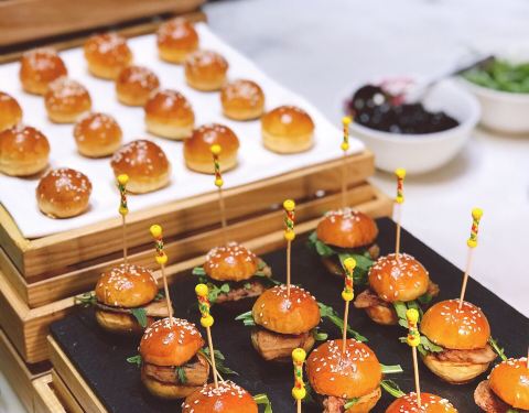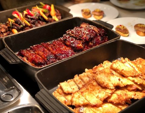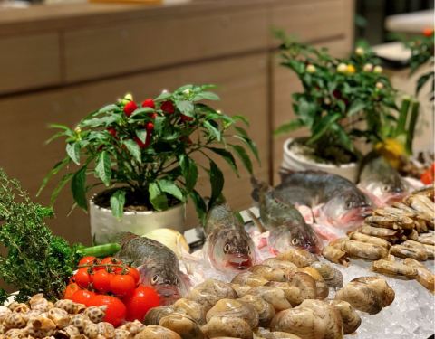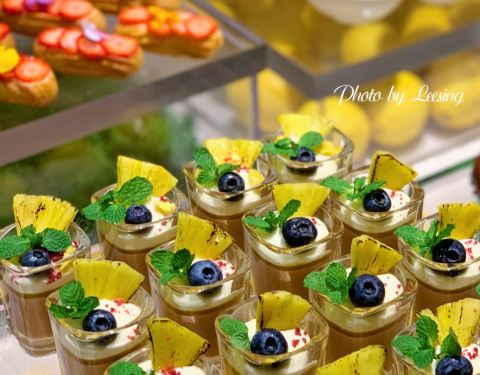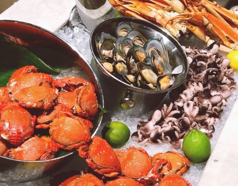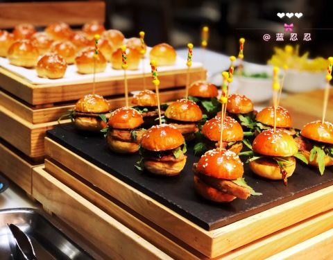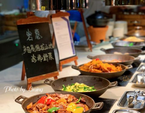 自助餐厅位于一楼的Market Cafe咖啡厅内,整个餐厅的布局比较简单大方,会偏商务些,以四人小桌为主,当然也可以拼桌。最吸引人的莫过于这个大闸蟹了,真的是无限量哦。蟹肥膏美,爱大闸蟹的光吃蟹就能回本。 还有大闸蟹的好搭档,小龙虾,也是全场无限量,有三种口味可选,想吃多少有多少。 一向在自助餐中不吃主食的我,居然被他们家的意面俘获,现做的意面酱汁、面条都恰到好处的完美。 被小伙伴们称为焦糖炖蛋一生推。女孩子们的乐趣多半和《天使爱美丽》中的主角一样,享受小勺敲碎顶部焦糖的瞬間:勺子一下去,短促而利落的一声脆响,好像寒冰乍破。然后,你轻轻舀一勺绵软鹅黄的蛋奶布丁,你的舌头便尝到到了春天的惊艳。 几款甜品都相当惊艳,即使不爱好甜食的人也吃了不少。他们的甜品柜分为两部分,可以台面取,也可以冰箱内取。 烧烤区、现煮区、鱼生区种类虽然不算多,单品质都不错,尤其爱牛肉卷,有被惊艳到的感觉。
