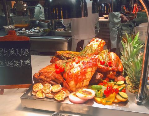 自助餐品种超级多,有新鲜刺身、生蚝、圣诞节有火鸡、小火锅、清蒸毛蟹、赖尿虾、好吃又好看的甜品蛋...