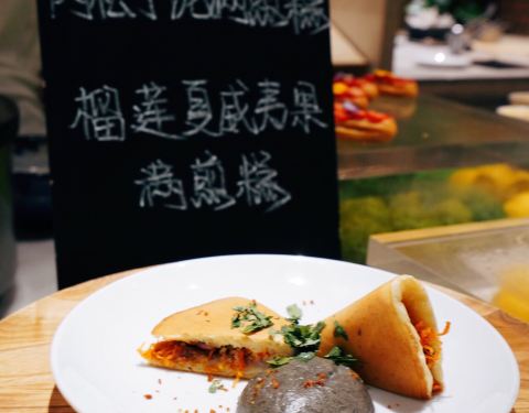 还有闽南经典小吃满煎糕,运用西式甜品手法重新演绎,现点现做,肉松芋泥和榴莲夏威夷果两种口味都...