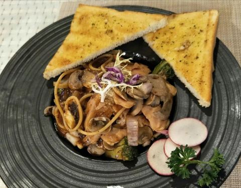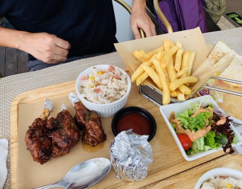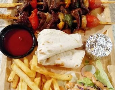 去了一定要点烤串!中间的面饼可以换成炒饭,不过我建议选择面饼,用面饼包裹肉串一起吃简直美味! 面饼和其他卷饼、芝士饼的饼是同一种。 牛油果芝士鸡肉饼有点腻,下次想再去尝试别的口味的~ 鸡肉黑椒意面,对于我这个热衷意面的人来说不是很喜欢~辣味偏重