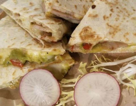 去了一定要点烤串!中间的面饼可以换成炒饭,不过我建议选择面饼,用面饼包裹肉串一起吃简直美味! 面饼和其他卷饼、芝士饼的饼是同一种。 牛油果芝士鸡肉饼有点腻,下次想再去尝试别的口味的~ 鸡肉黑椒意面,对...