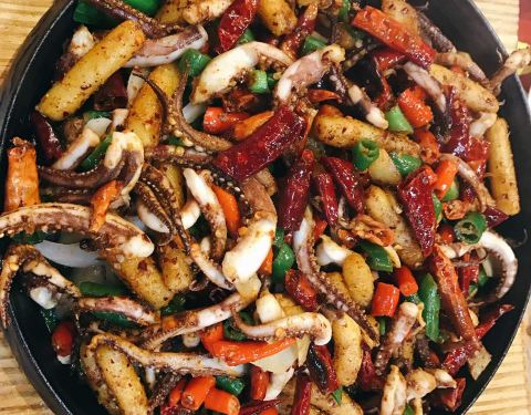 豆苗豆腐汤口味清淡不错,鱿鱼须和鱼头分量足,就是鱿鱼丝不太入味,所以最后大部分打包回家,准备再加工