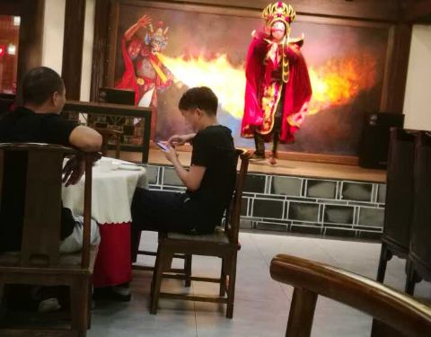 - 应该是最早的一家店,好久没去巴国布衣吃饭饭了。站着看完表演才去落座吃饭