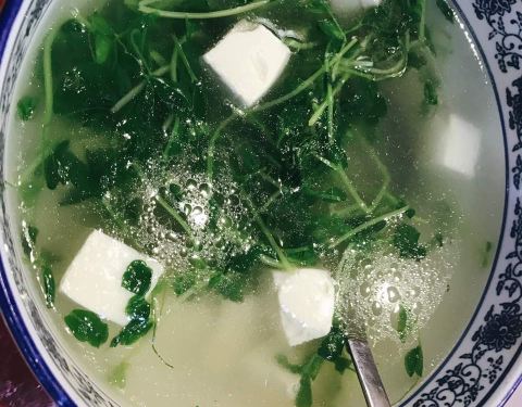 - 豆苗豆腐汤口味清淡不错,鱿鱼须和鱼头分量足,就是鱿鱼丝不太入味,所以最后大部分打包回家,准备再加工