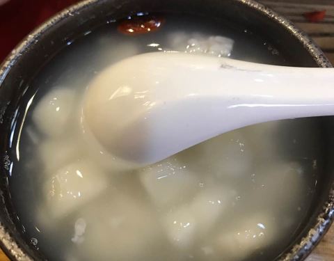 豆苗豆腐汤口味清淡不错,鱿鱼须和鱼头分量足,就是鱿鱼丝不太入味,所以最后大部分打包回家,准备再加工。鱼头一开始没熟,再回炉蒸了一下,味道还行。酒酿圆子小小份,还行。