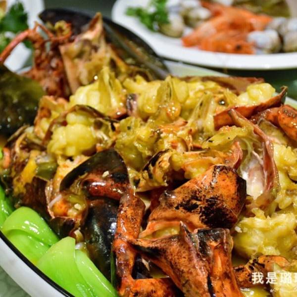 上汤焗波士顿大龙虾,真的超级大只!蟹钳比手机还大个,可能都有中年男子的手掌大小。