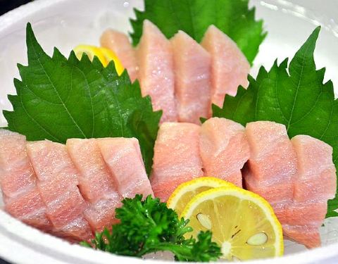 - 靠近中腹的中脂肥而不腻,而颜色最鲜红的赤身鲜味十足,香甜可口,也是食客的最爱