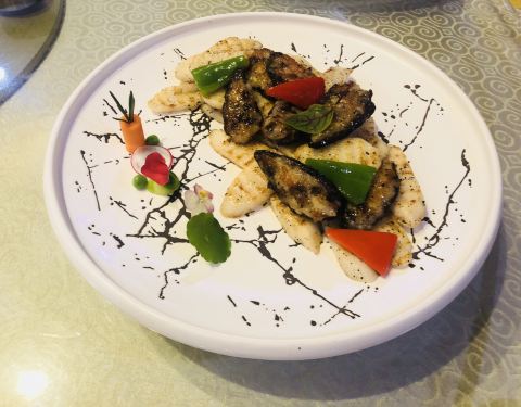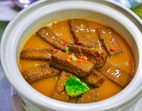 黄焖繸鳚鱼,用煲的方式烹制,看起来色香味俱全。但今天的好吃的实在是太多了,竟没有再多的胃能够容得下它的存在。只能稍微尝了尝这其中的滋味。