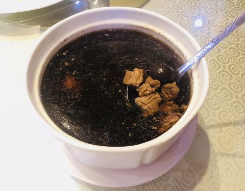 - 「黑蒜头炖猪肝沿汤」我们最爱最养生啦、汤是必备的,猪肝沿已经炖软烂软烂的,好喝得不得了,一定...